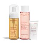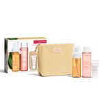 Este coffret reúne numa bolsa em veludo a rotina para as peles sensíveis. Primeiro, uma espuma que limpa suavemente a pele graças à associação do complexo de suavidade Clarins com os extratos de ervas dos Alpes e extratos de ácidos da polpa do tamarindo. De seguida, uma loção tónica apaziguante com extrato de camomila e polifenóis de flor de açafrão que a reequilibra. Por fim, um esfoliante suave que elimina as células mortas e as impurezas. A pele fica mais limpa, mais suave e mais luminosa. A sensação de pele que repuxa é apaziguada. A pele fica luminosa.