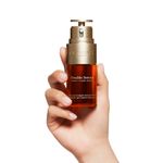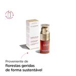 A 8ª geração do icônico Double Serum Clarins. Aperfeiçoada com uma fórmula dupla única combina 21 extratos de plantas poderosos para impulsionar as 5 funções vitais da pele, ou seja, regeneração, nutrição, oxigenação, hidratação e proteção, assim como para atuar visivelmente sobre os sinais do envelhecimento. A sua textura dupla, óleo não gorduroso e gel fundente, assim como o seu aroma agradável, com notas frutadas e florais requintadas e refrescantes, proporcionam uma sensação única de bem-estar. Duas fórmulas em dois compartimentos separados num só frasco: uma inovação tecnológica de conceção ecológica que dá prioridade aos materiais responsáveis e limita os resíduos.