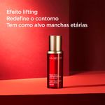 Sérum anti-idade para todos os tipos de pele. Clarins Super Restorative Remodelling 30ml redefine, promove efeito lifting e reduz a aparência das manchas para um rosto renovado. O Sérum Anti-Idade Clarins Super Restorative Remodelling 30ml foi desenvolvido com extratos naturais que possuem ação diretamente sobre os sinais de idade, preservando o volume do rosto e redefinindo os contornos. Além disso, reduz a formação de manchas visivelmente e resgata a luminosidade da pele.