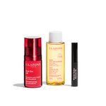 O trio essencial que realça a doçura dos olhos e lhe proporciona um olhar incrível: um óleo desmaquilhante suave com a pele frágil do contorno dos olhos, mas implacável com a maquilhagem de longa duração, incluindo a maquilhagem à prova de água, um cuidado Expert do contorno dos olhos com extrato de harungana bio e cera de acácia para um efeito "lifting" em apenas 60 segundos* e uma Mascara 4D - volume, comprimento, curvatura, alta definição - que sublima as pestanas. * Teste de satisfação – 110 mulheres – 60 segundos após a primeira aplicação.